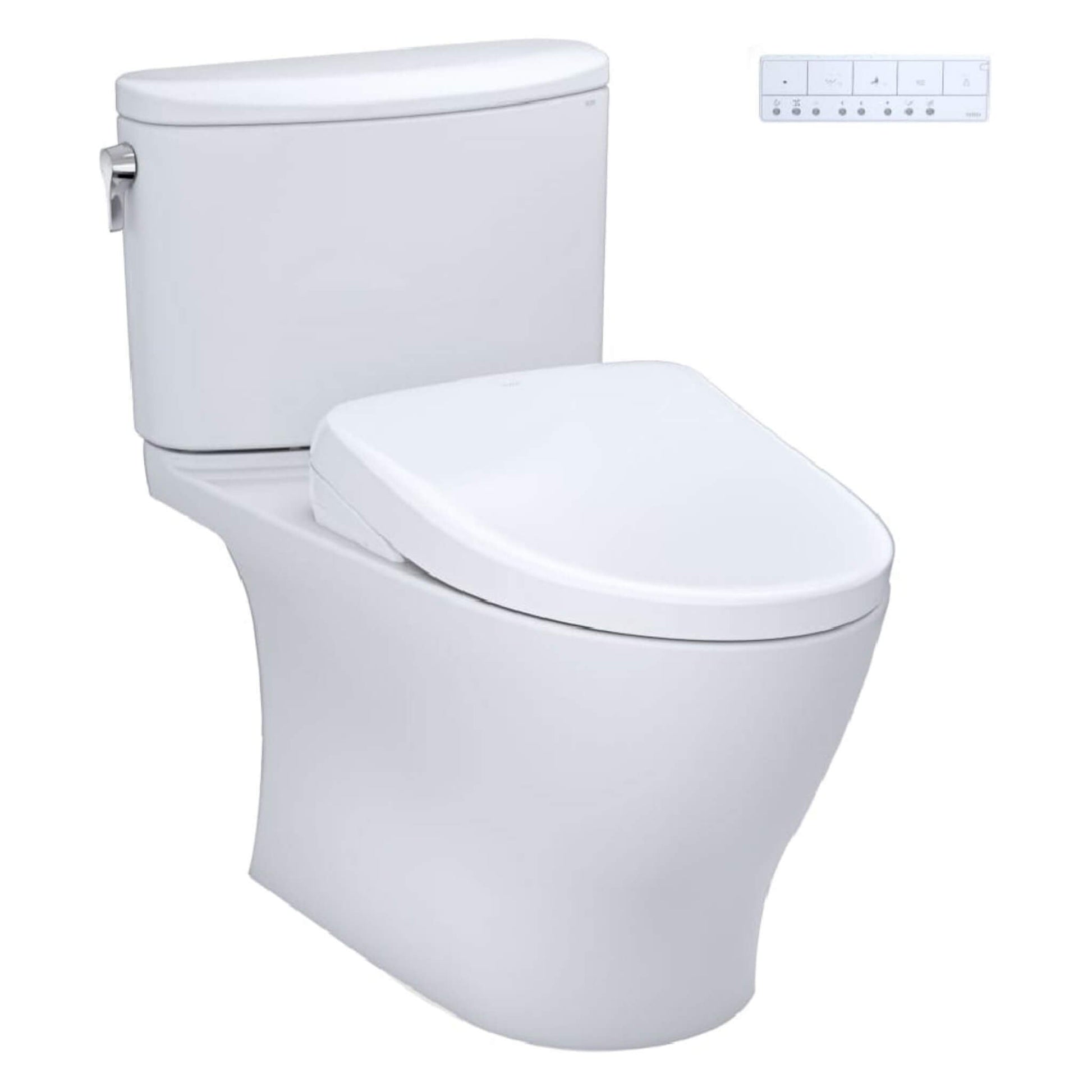 - The TOTO Washlet+ Nexus Two-Piece Elongated 1.28 GPF Toilet and Contemporary Washlet+ S7A Bidet Seat effortlessly conceal the power cord and water supply hose, ensuring a sleek and seamless look in your bathroom.