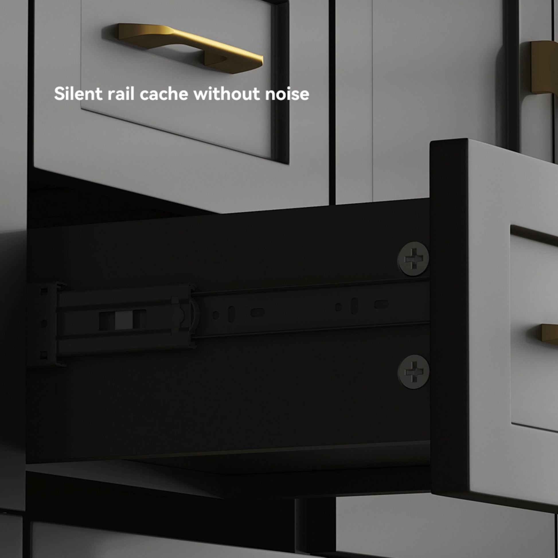 - Integrated with advanced hinges and slides, the silent soft-close technology guarantees a smooth, whisper-quiet closing action that prevents slamming and preserves the vanity's integrity.
