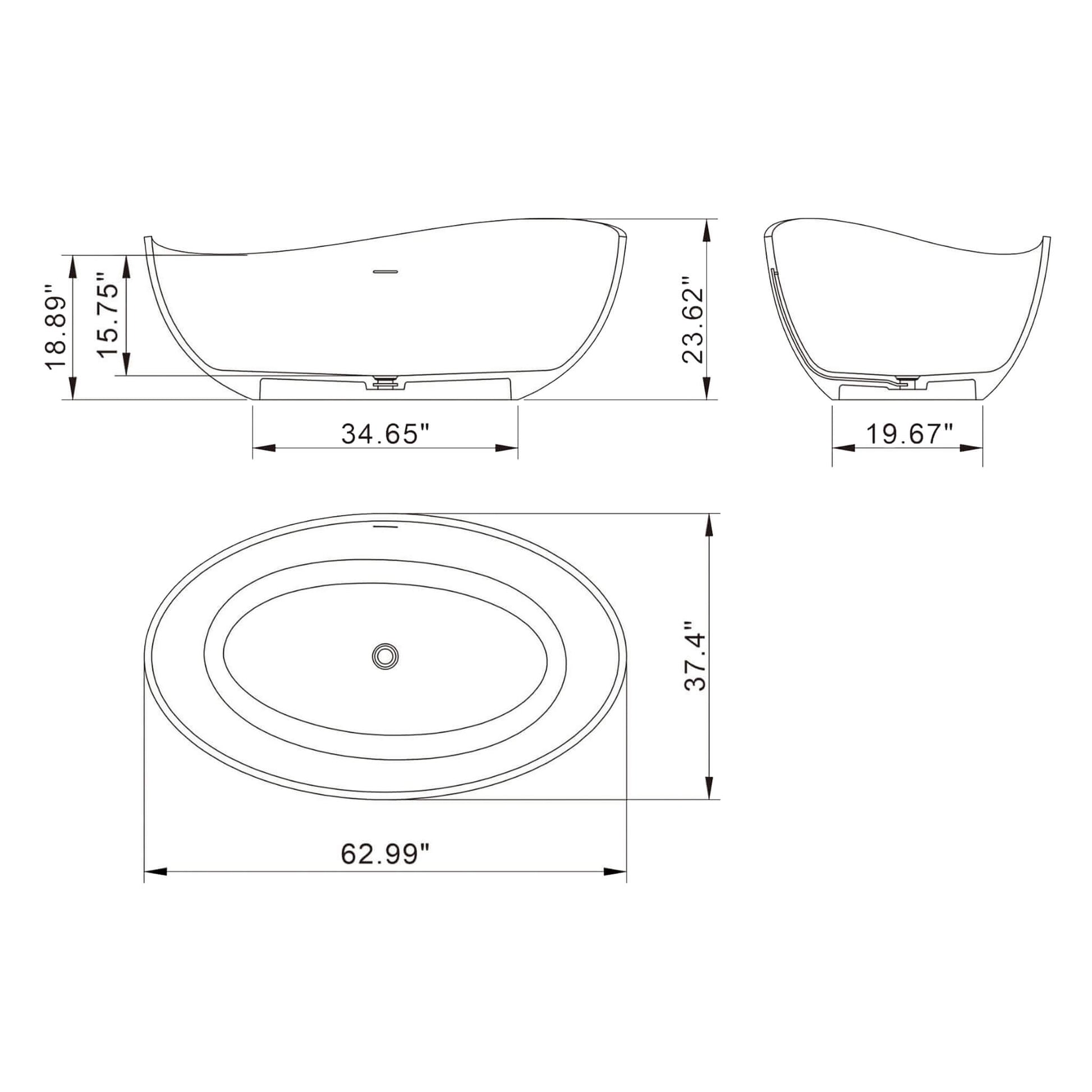 - Indulge in a truly immersive soaking experience with generous dimensions of 63" x 37.4" x 23.6", providing ample room to stretch out and unwind completely.