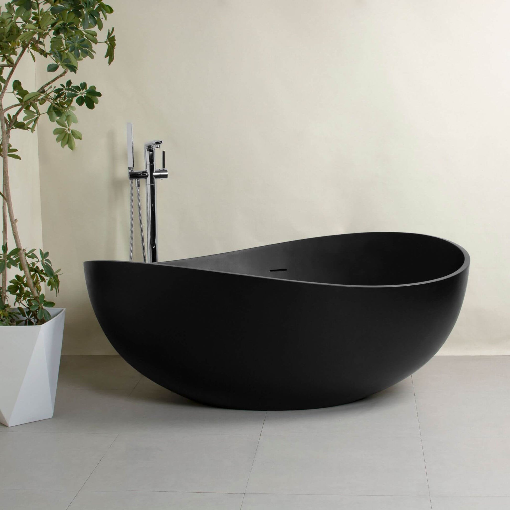 BUY THIS NUVIA 63-INCH MODERN FREESTANDING SINGLE-PIECE MATTE BLACK FINISH STONE RESIN BATHTUB AT SAKSBY WHOLESALE & SAVE! WHY PAY MORE ELSEWHERE!