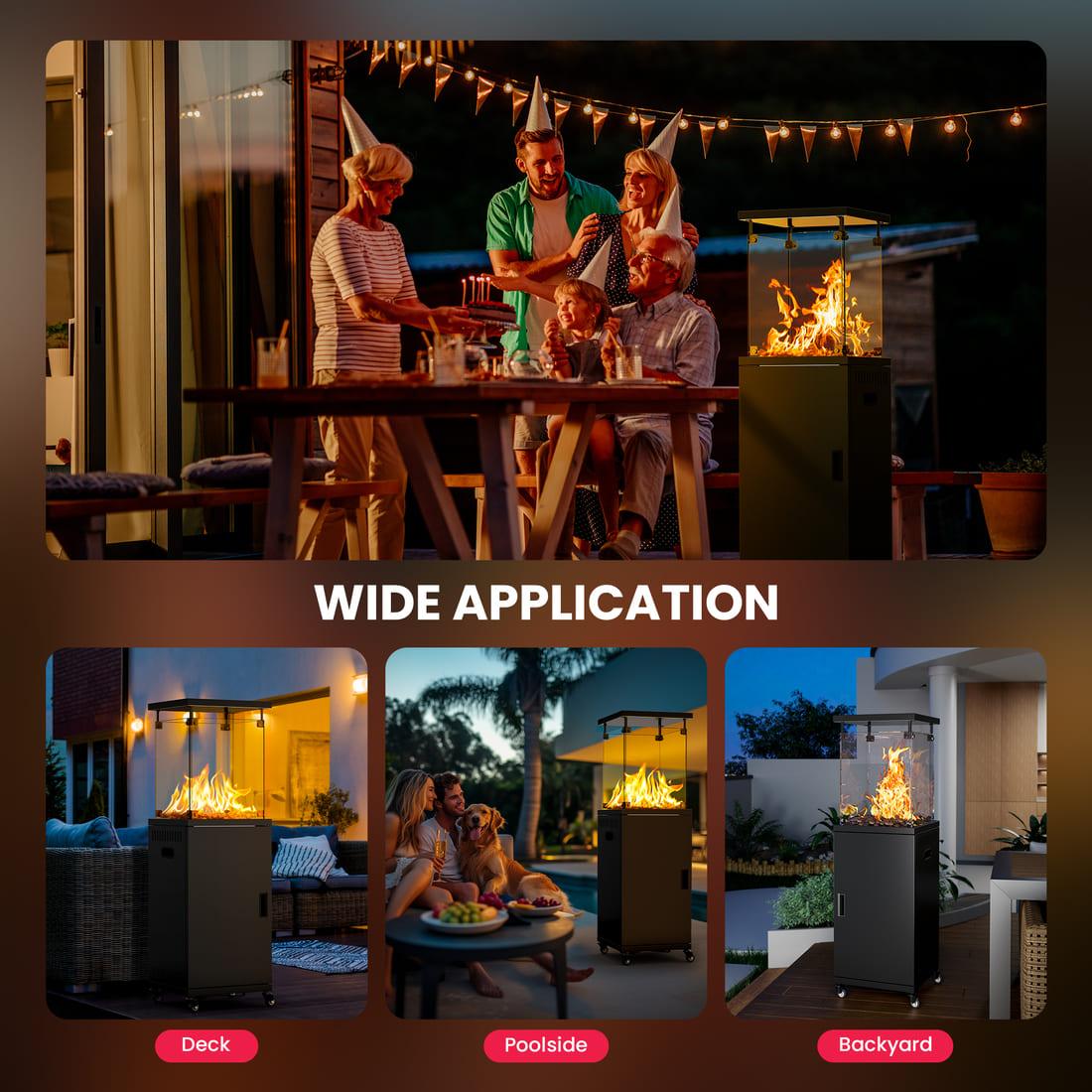 Pamapic 41000 BTU Short Patio Heater Propane with Cover & Lockable Wheels for Deck, Porch