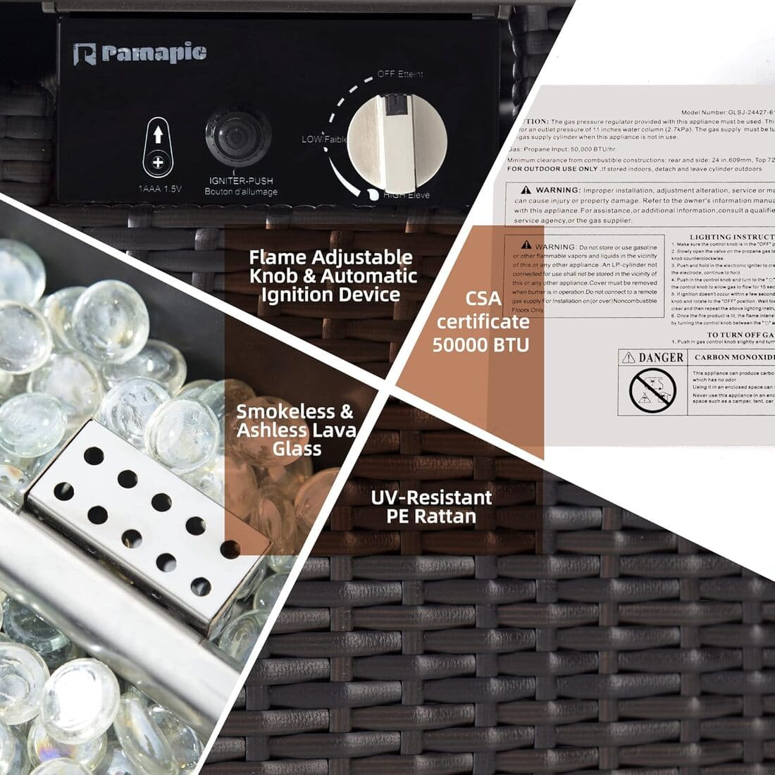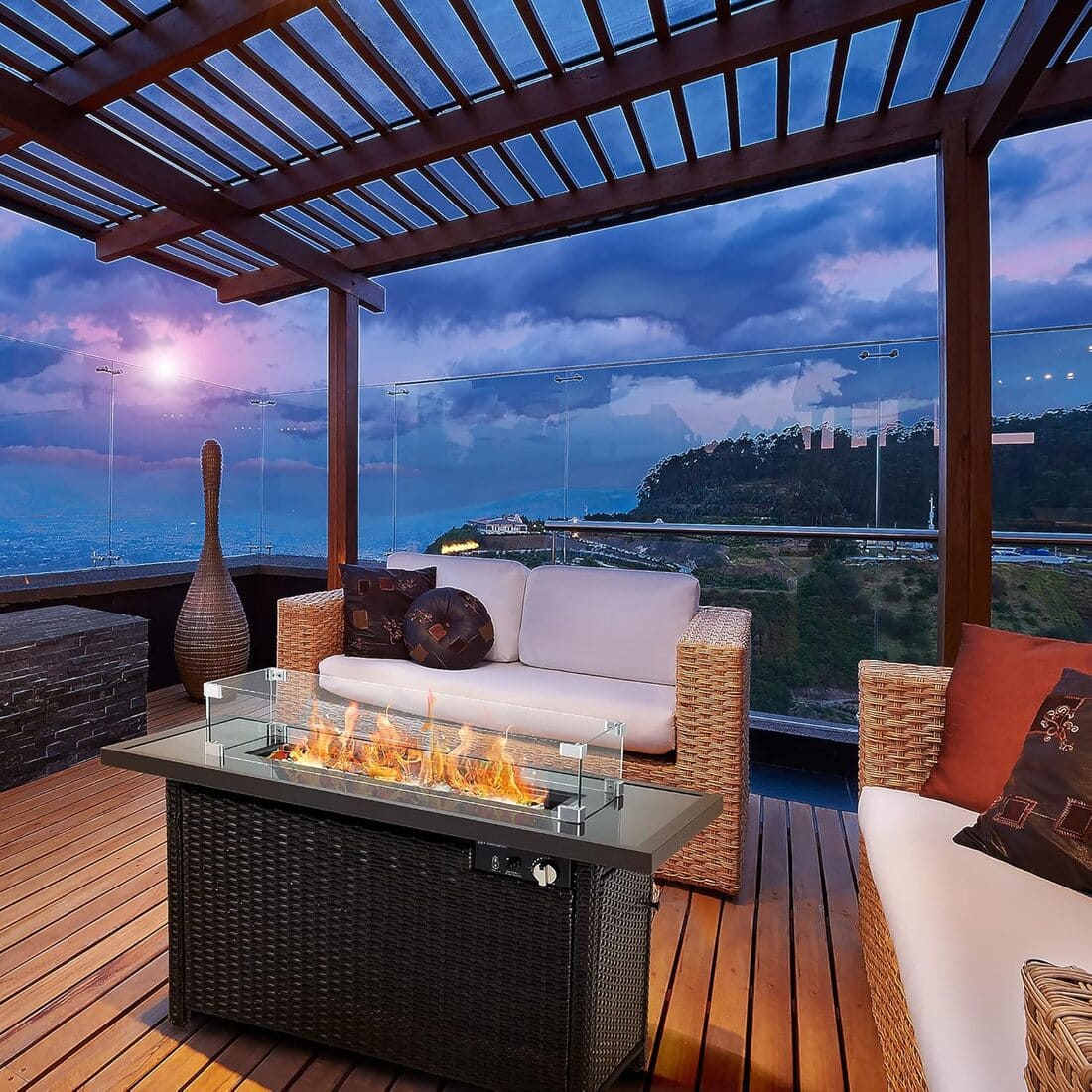 Pamapic 42" Rectangular Propane Fire Pit Table with Glass Wind Guard, 50,000 BTU Output