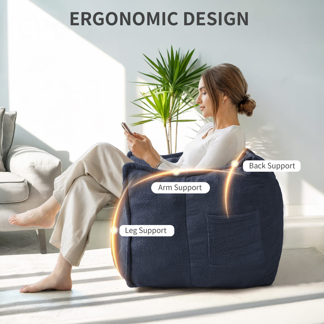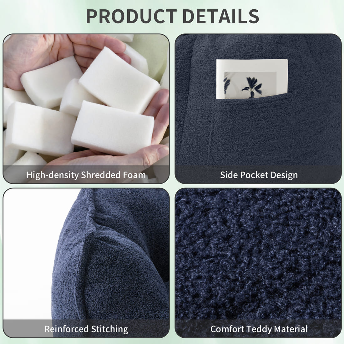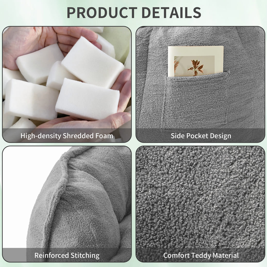 Soft & Textured Teddy Fleece Fabric: Wrapped in ultra-soft teddy plush, it offers a soft, textured feel that’s both cozy and stylish, and filled with high-resilience foam beads, this bean bag molds gently to your body for all-day relaxation.
