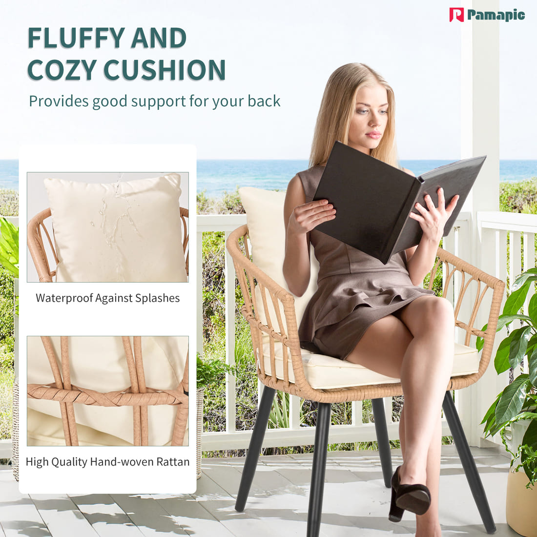 Pamapic Patio Round Dining Set with Wood Table Top & Wicker Rattan Chairs