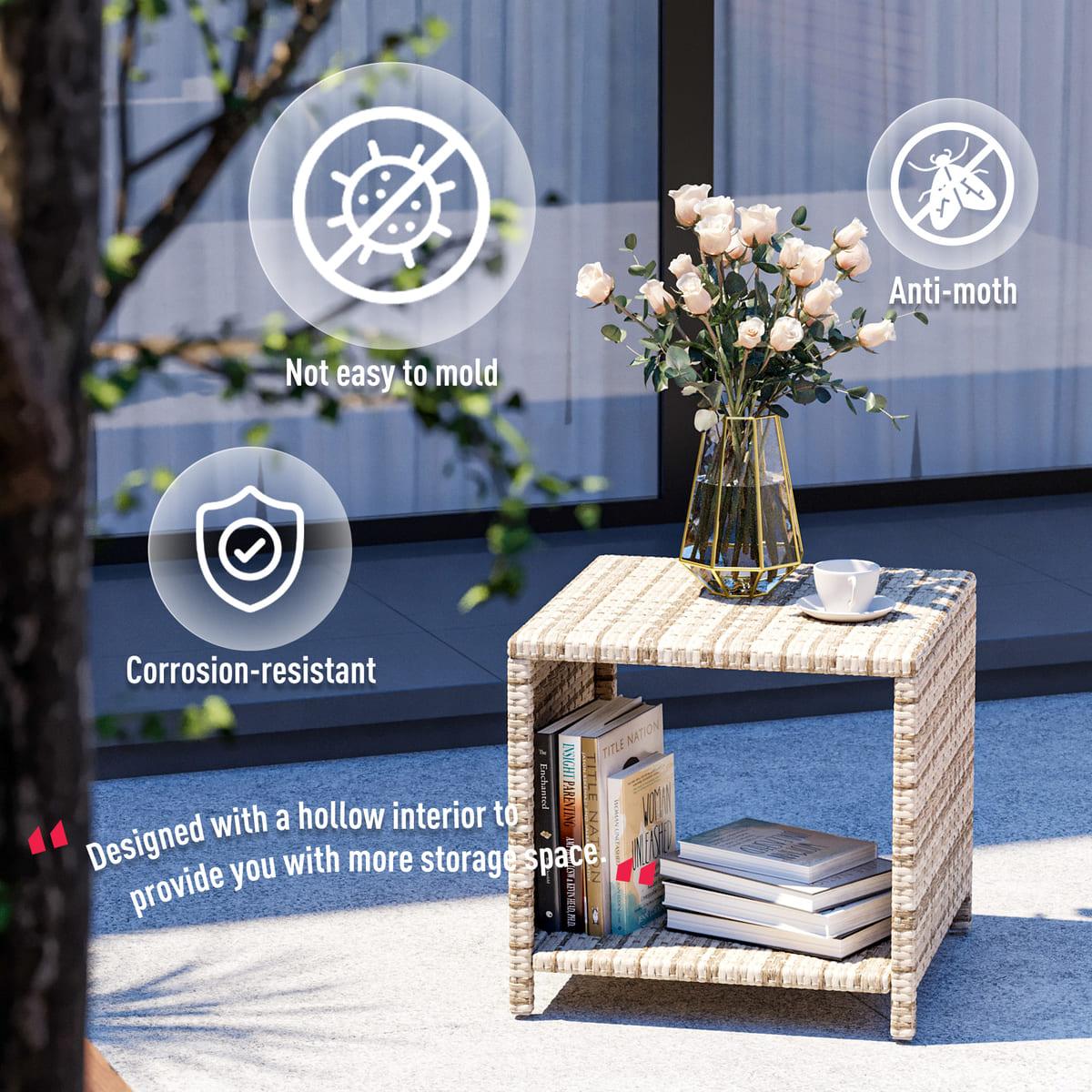 Crafted with handwoven PE rattan and a rust-resistant steel frame, it stands strong against the elements. The water-resistant cushions ensure easy upkeep, staying fresh and inviting through every season.