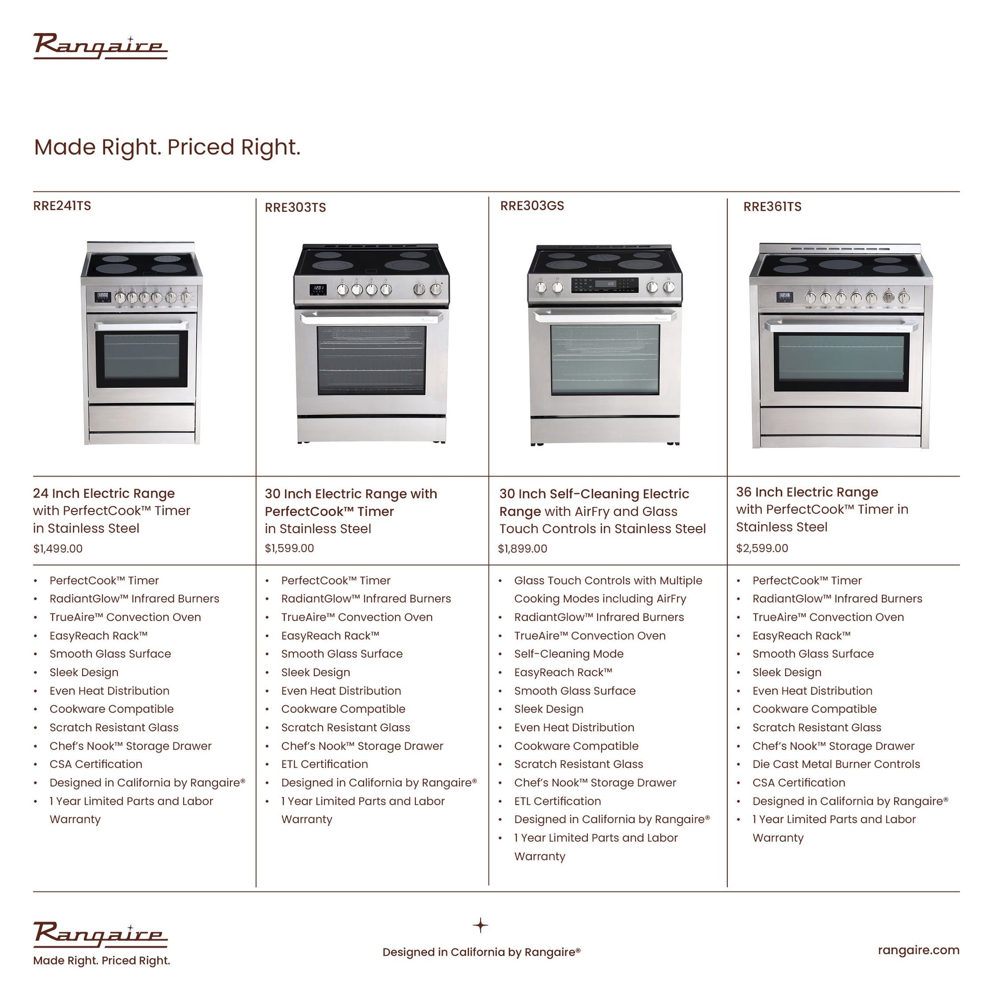 RRE241TS – Introducing the Rangaire 24 Inch Electric Range – the perfect kitchen companion for your culinary adventures. With our innovative PerfectCook™ Timer, your dishes will always be cooked to perfection.