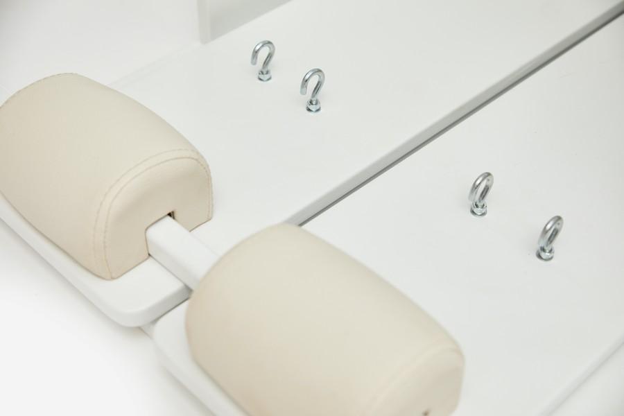 The Sportline Superior 1-ON-1 Studio Package will enhance your routine and Pilates experience, or guide clients through exercises with this impressive piece of equipment. Its clean white structure and chrome accents create a glossy, chic look that will fit wonderfully into your space. The durable hornbeam wood base will support you and the Reformer platform is designed to silence your movement. This bundle also includes a Jumpboard and Sitting Box offering even more value and exercise possibilities to this excellent deal!