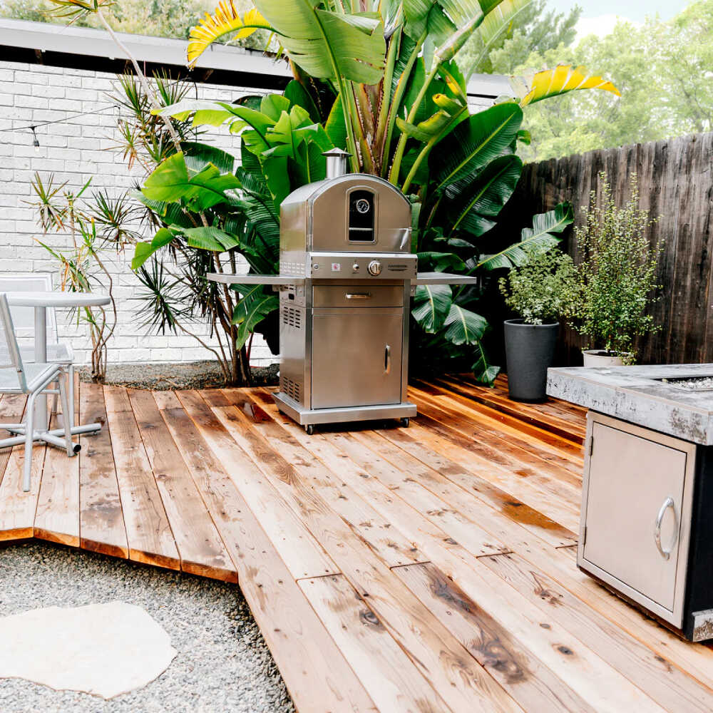 Are you thinking of Pizza delivery? We think not... This incredible outdoor gas oven will add versatility to your backyard, allowing you to cook pizza, seafood, casseroles, loaves of bread, meats, and your favorite desserts right on your own patio.The design of the Summerset oven is exquisite and does not take up much space so it's perfect for limited outdoor space and balconies. The two side tables on the pizza oven cart fold in as needed.