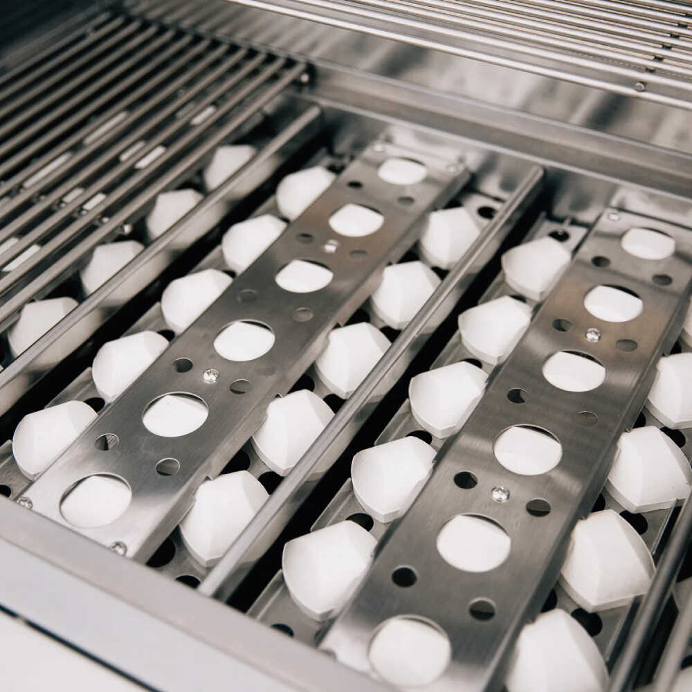 - The Sizzler Pro boasts up to 5 cast stainless steel burners, ensuring powerful and even heat distribution across your grilling surface. Say goodbye to hot and cold spots with the unique captured briquette trays..