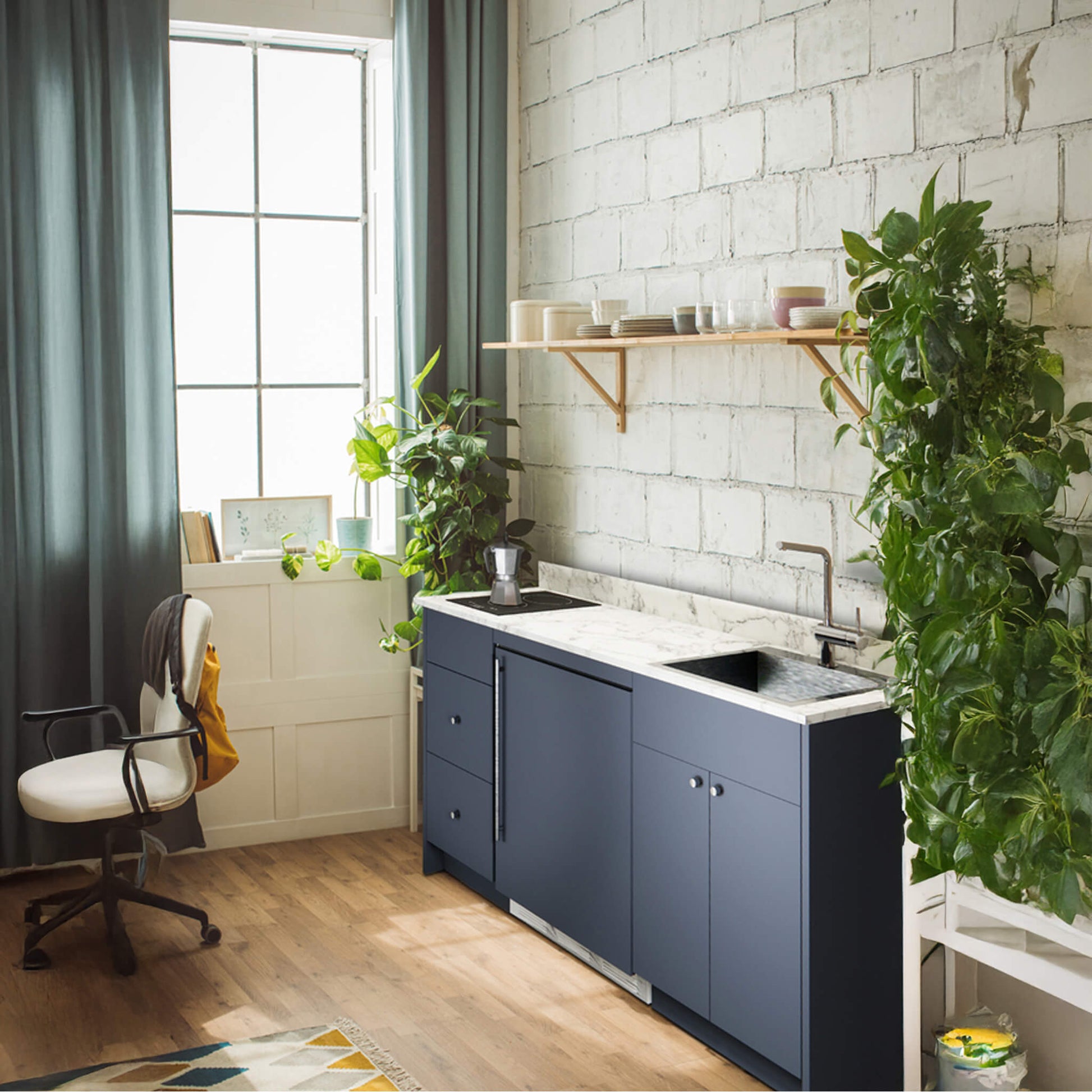 This isn't just about looks; it's packed with high-performance, energy-saving appliances. You get an ENERGY STAR certified refrigerator-freezer to keep your groceries fresh and an ENERGY STAR certified 2-burner induction cooktop for fast, efficient, and safe cooking. The cooktop heats your cookware directly, saving energy and time! Plus, the included stainless steel sink and gooseneck faucet make cleanup a breeze. Every component is designed to work together seamlessly, offering you incredible convenience and performance.