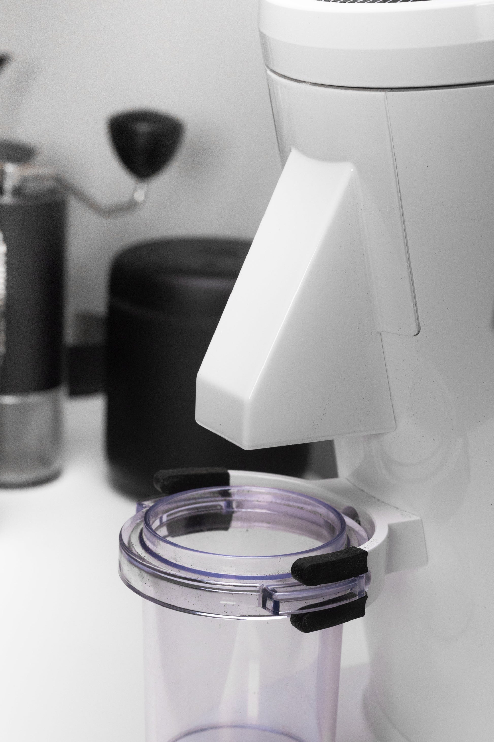 In order to prevent the grinder from making a mess and getting coffee all over the place, the grinder includes a metal dosing cup collar. It can also be flipped over and used with a 58mm portafilter if you prefer to grind right into your portafilter.