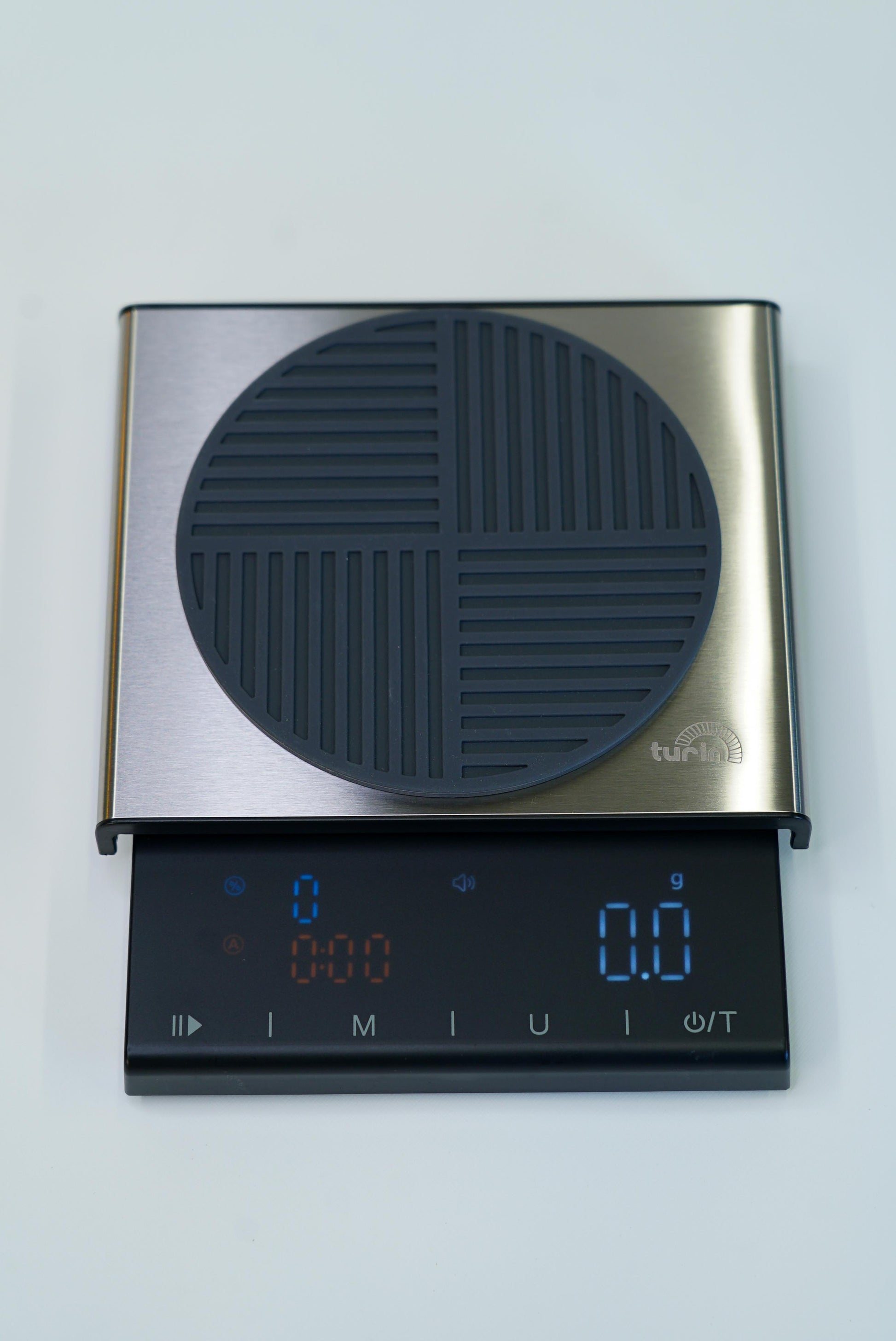 The Turin Pour Over Scale is an accurate and responsive coffee scale designed for the professional wanting to optimize the pour over brew method. What sets the Turin Pour Over Scale apart from others? The scale has an integrated brew ratio calculator built in. No more guessing or having to do calculations.