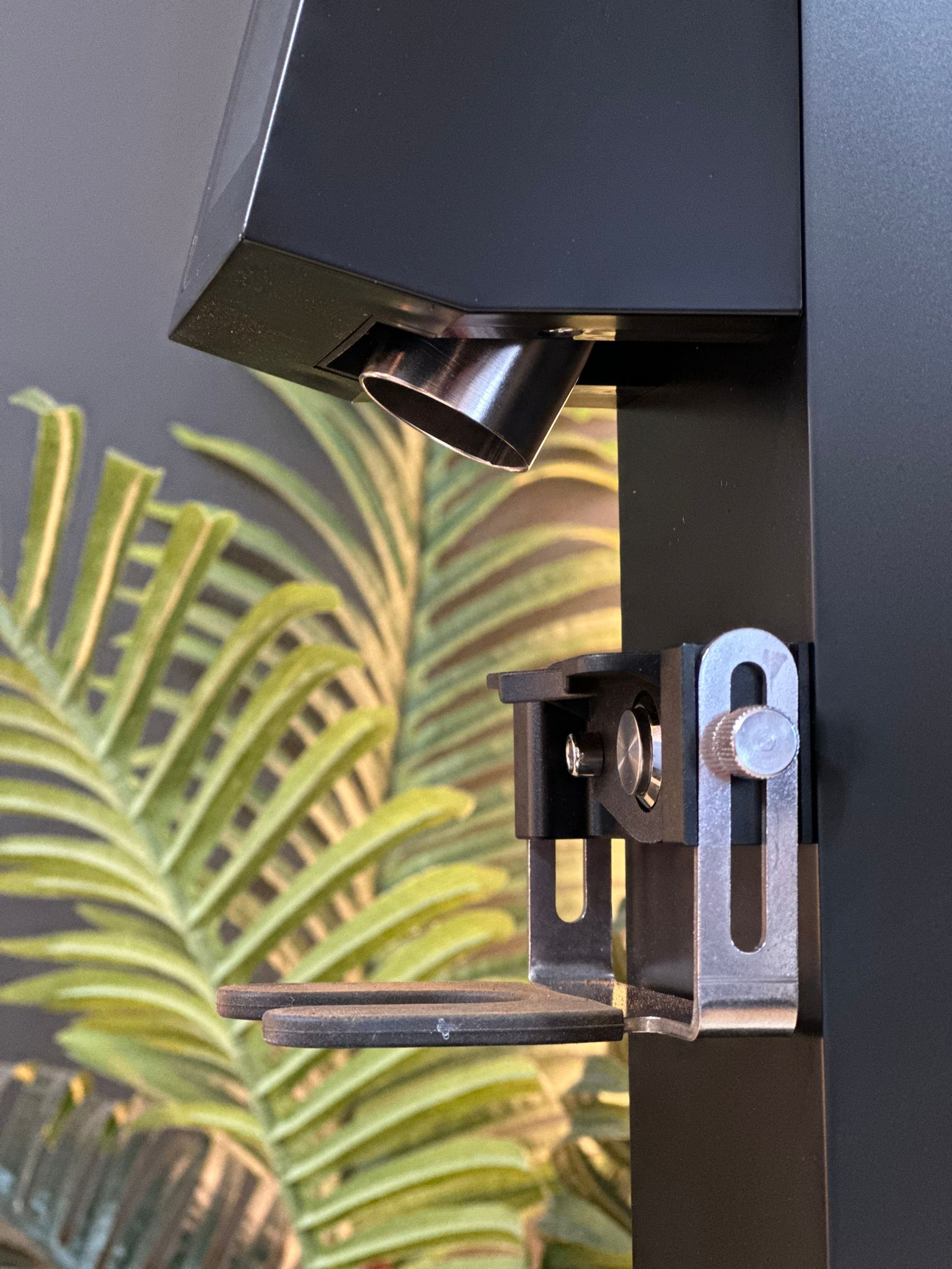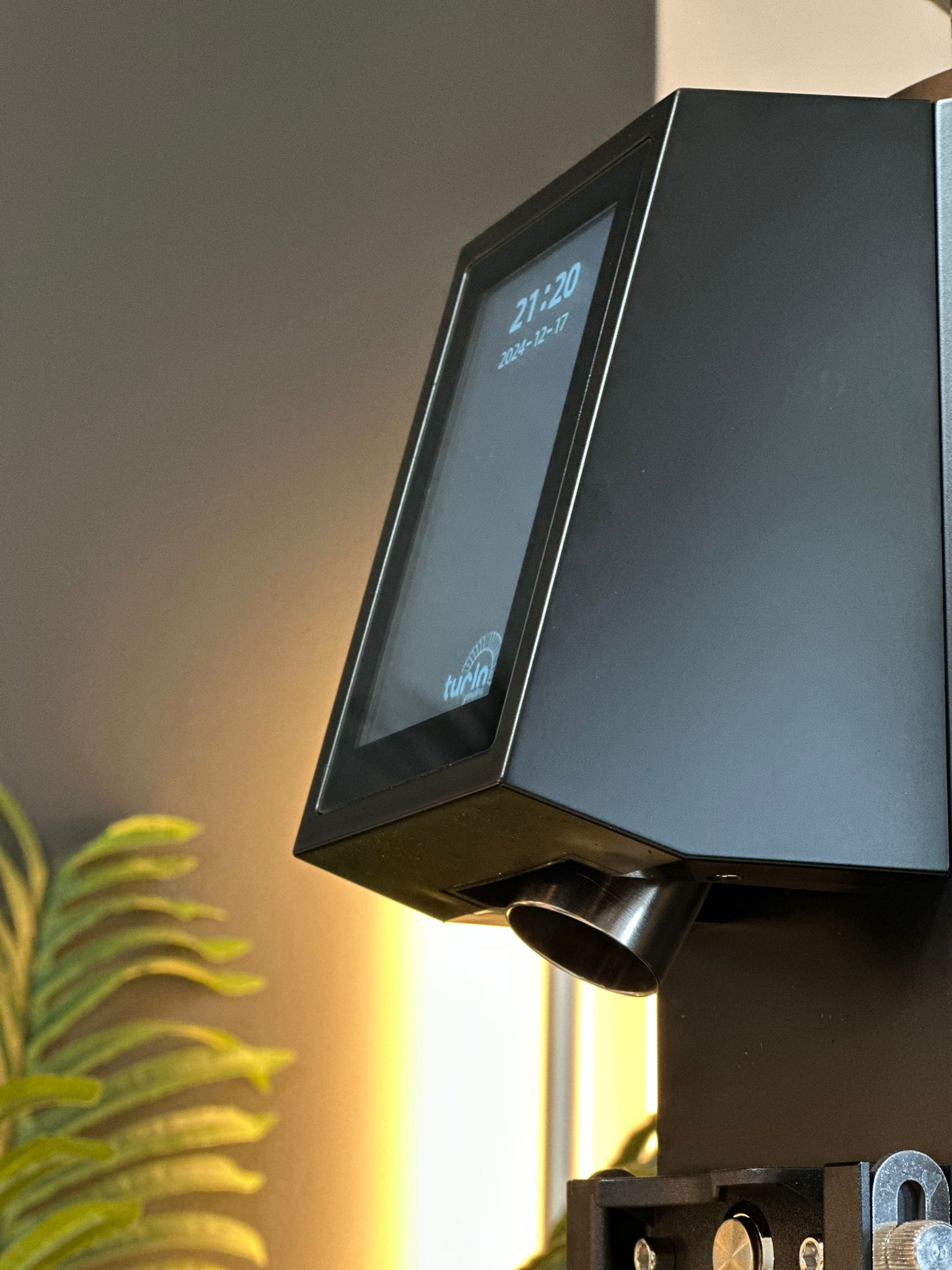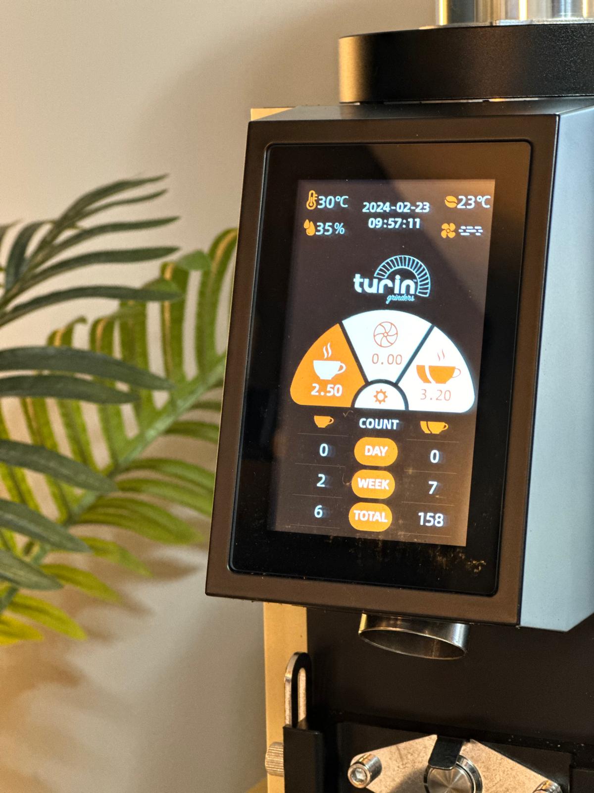 Introducing the all new Turin ZF83 espresso grinder. This grinder is designed to include features that are great for a commercial coffee shop environment. Large 83mm DLC coated espresso burrs make fast efficient work grinding each dose on demand, touch screen interface for easy adjustment of the grind time or dose selection. A removable chute (magnetic) for easy cleaning at the end of a busy shift. The portafilter fits into the adjustable portafilter cradle triggering the dose selected from touch display. A 3.5 pound capacity bean hopper is the perfect size to prevent you from needing to constantly fill up your bean hopper during a busy shift. In true fashion of a professional espresso grinder, the ZF83 has the ability of monitoring ambient temperature, humidity, and bean temperature. The grinder has the ability to turn on a cooling fan to keep the grinder running efficient and cool.