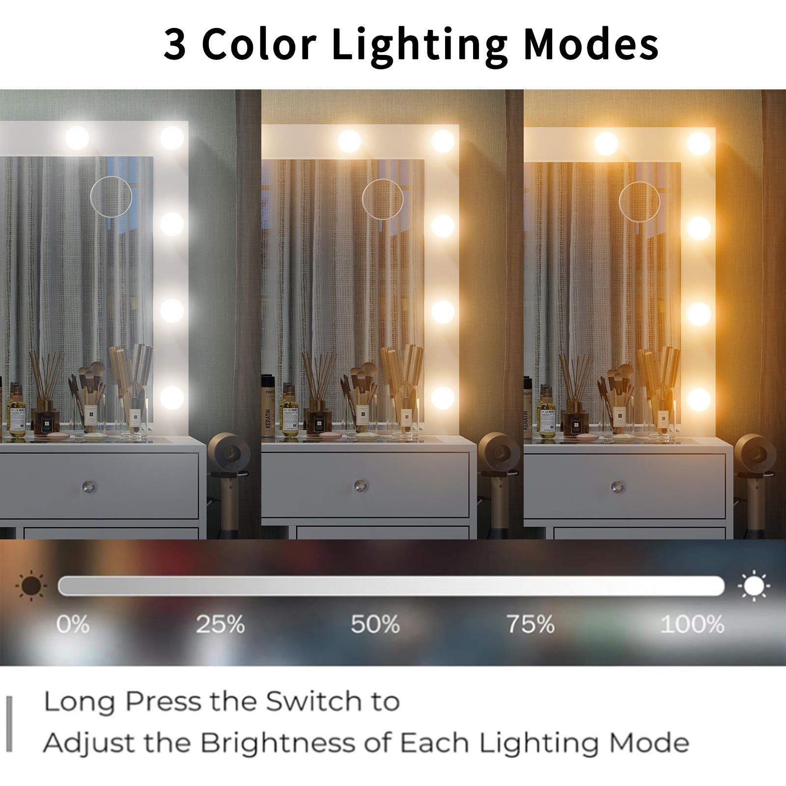 Vektaya US-VD015 Bedroom Makeup Vanity desk with LED Mirror, 11 Drawers