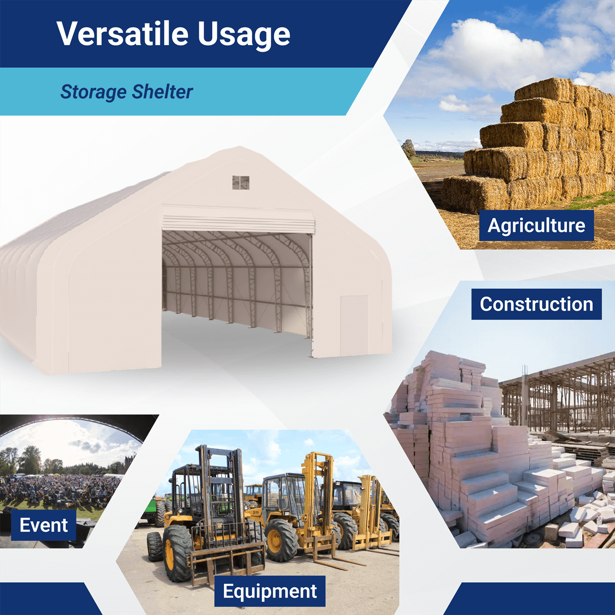 Provides unlimited storage space with 50’ wide, 80’ long, and 23’ high.