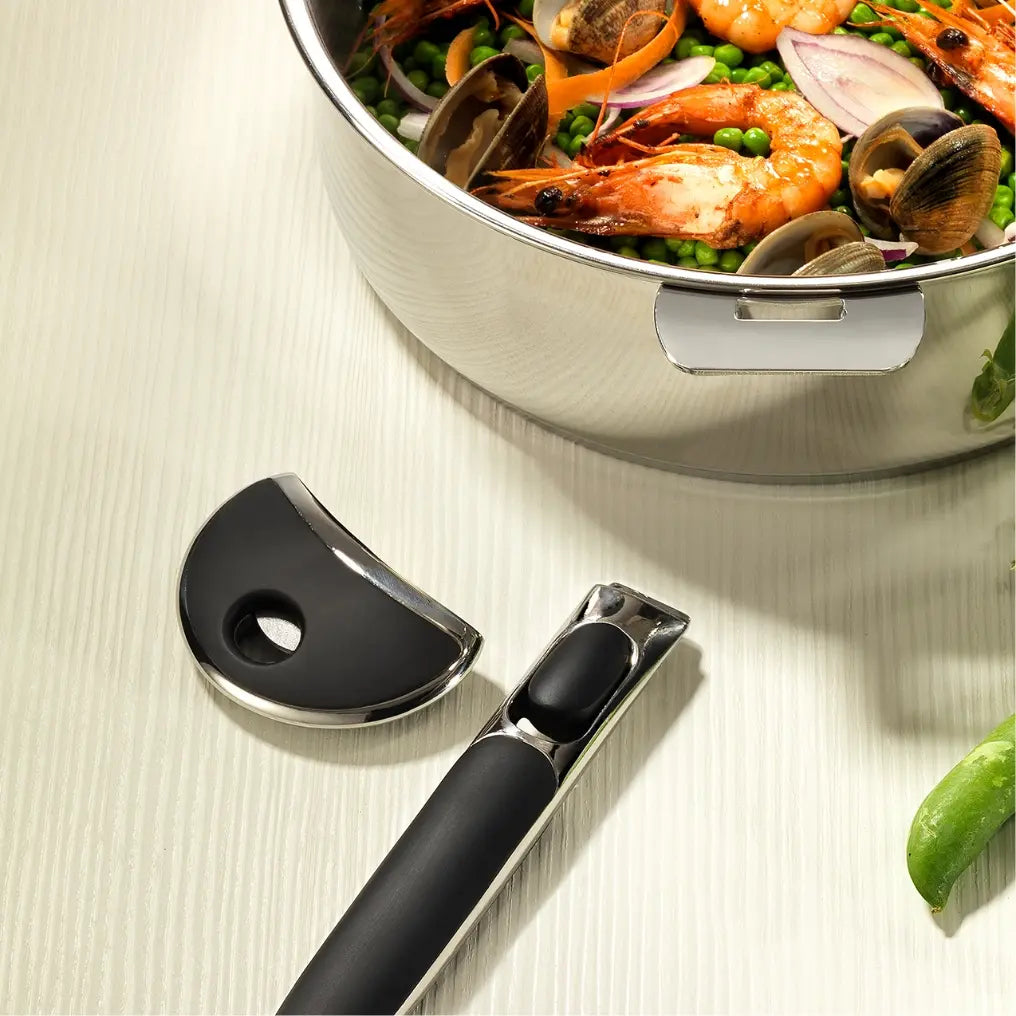 Detachable handles are designed to be used during the cooking process when maneuvering cookware from stovetop to oven or oven to table. For safety, the handles shouldn’t be left on while cooking. While heat-resistant, prolonged exposure can negatively impact the detaching mechanism over time.